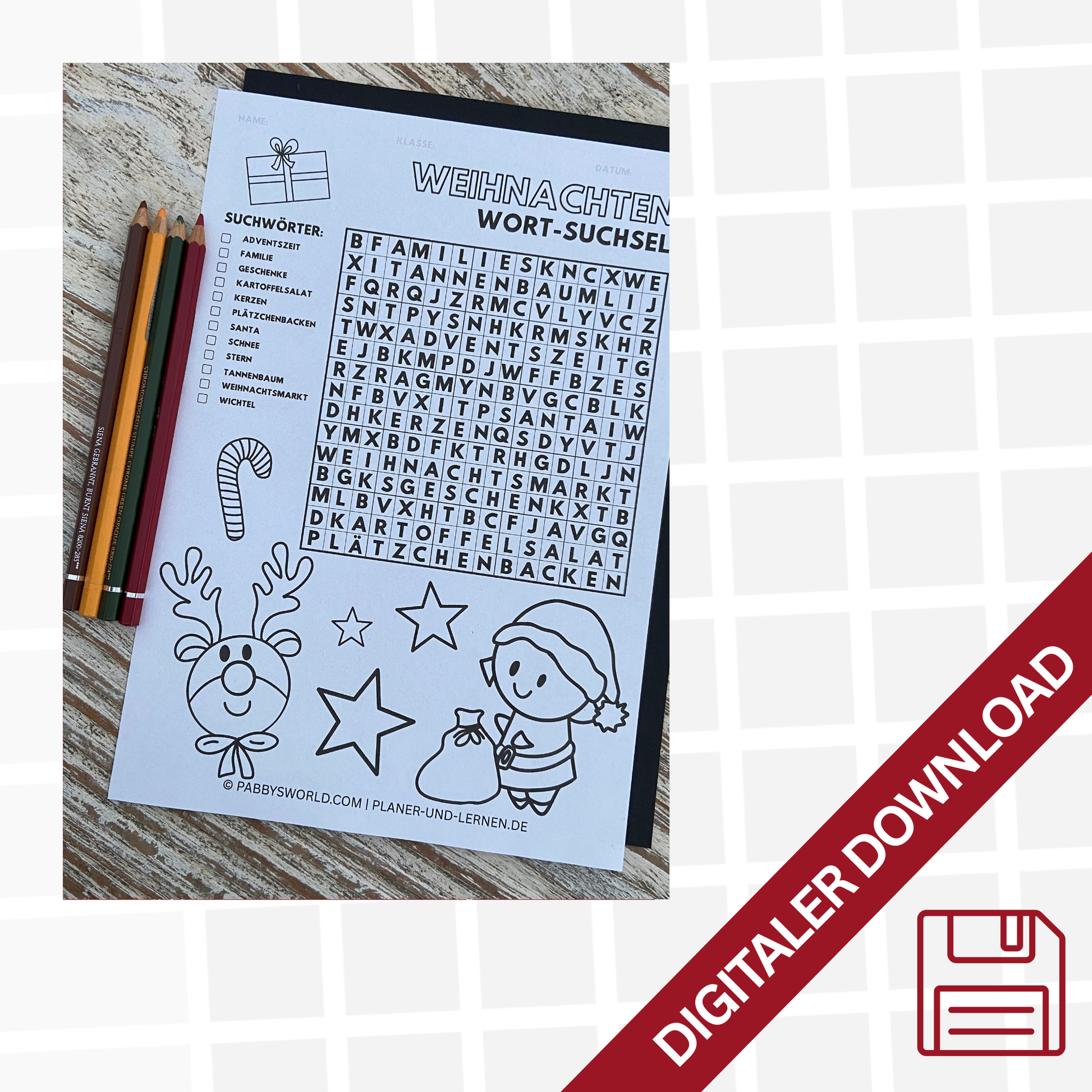 2025 SUCHSEL zum Ausdrucken für WEIHNACHTEN | WORT-RÄTSEL | BUCHSTABENGITTER